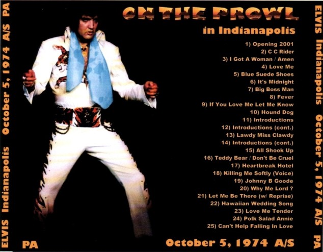 On the Prowl In Indianapolis (05 10 1974 AS) CD - Elvis new DVD and CDs Elvis Presley FTD Bootleg Import Live Concert CD and DVD - Elvis Presley Rare DVD and CDs Elvis Live Concert On Tour DVD Outtakes