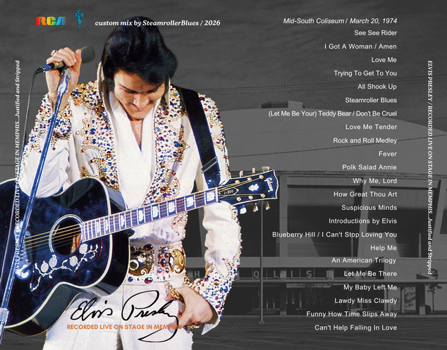 Recorded Live on Stage in Memphis Justified and Stripped (Steamroller Blues) CD - Elvis new DVD and CDs Elvis Presley FTD Bootleg Import Live Concert CD and DVD - Elvis Presley Rare DVD and CDs Elvis Live Concert On Tour DVD Outtakes